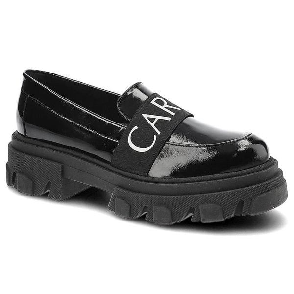 Półbuty damskie Carinii, lakierowana cholewka o gładkim wykończeniu wsuwany fason z dekoracyjnym paskiem, czarne, B7994_-037-000-000-E33
