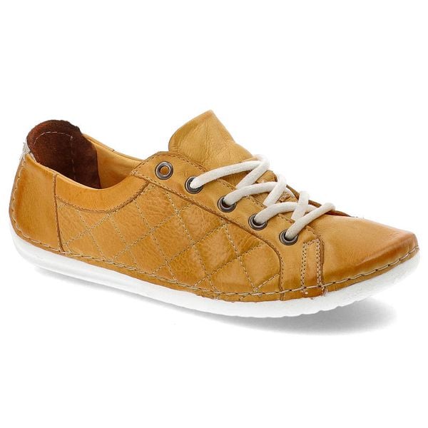 Półbuty damskie Maciejka, z naturalnej skóry z klasycznym sznurowaniem miękką cholewką oraz elastyczną podeszwą, żółte, 159307