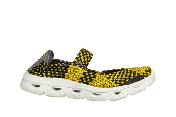 Półbuty sportowe marki Rock Spring w kolorze czarno-żółtym.Plecione cholewki zostały zrobione z wyjątkowo elastycznych gumek, dzięki czemu idealnie dopasowują się do indywidualnego kształtu (tęgości) stopy. Bardzo miękkie, piankowe wkładki oraz lekkie, antypoślizgowe podeszwy sprawiają, że buty są bardzo wygodne. Ponadto zapiętek wykonany z miłego w dotyku zamszu niweluje możliwość otarć pięty. Przez środek biegnie gruby […]
