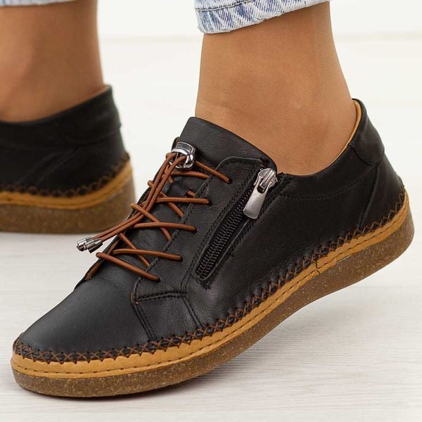 Czarne skórzane półbuty damskie na wiosnę i jesieńto połączenie komfortu, funkcjonalności i ponadczasowego stylu. Cholewka wykonana została z wyjątkowo miękkiej skóry naturalnej, która doskonale dopasowuje się do stopy i zapewnia wygodę przez cały dzień. Praktyczne rozwiązania w postaci gum ściągających oraz zamka ułatwiają szybkie zakładanie obuwia i gwarantują stabilne dopasowanie. Model posiada okrągły nosek, który zapewnia […]