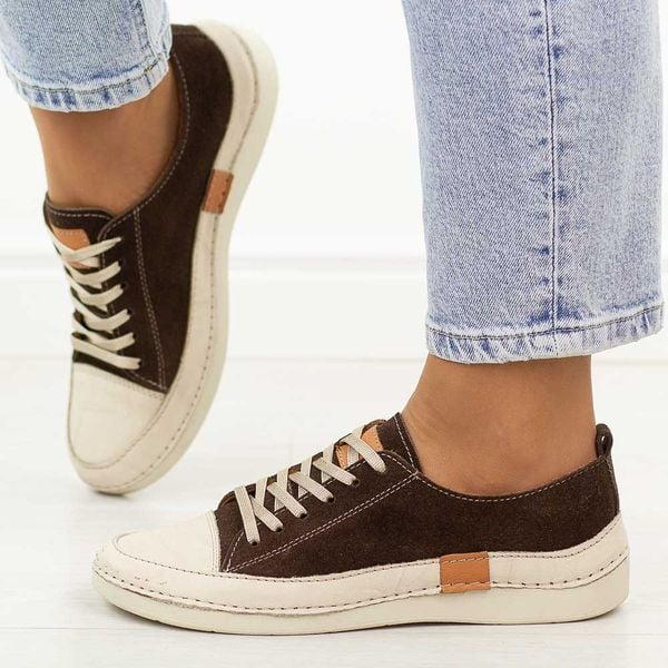 Brązowe nubuk skórzane półbuty damskie T.Sokolski 8260