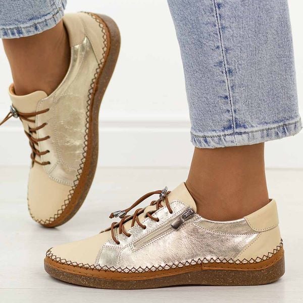 Złote skórzane półbuty damskie T.Sokolski 8207