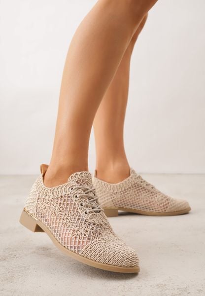 Ciemnobeżowe Ażurowe Półbuty z Metaliczną Wstawką Homonis