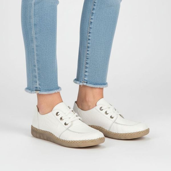 Półbuty damskie Rieker, skórzana cholewka z naturalnej skóry klasyczna niska forma z wiązaniem elastyczna lekka podeszwa wygodny model do codziennego