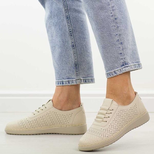 Beżowe ażurowane półbuty damskie Unisoft 5000