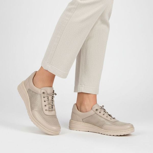 Półbuty damskie Wasak, cholewka skóra naturalna elementy materiałowe siateczkowe sznurowanie gruba podeszwa profilowana, beżowe, 0763