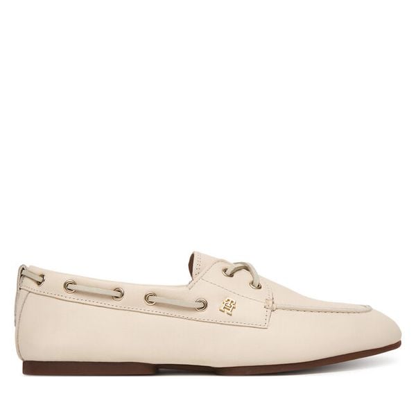 Półbuty Tommy Hilfiger Th Sleek Leather Boat Shoe FW0FW09148 Écru