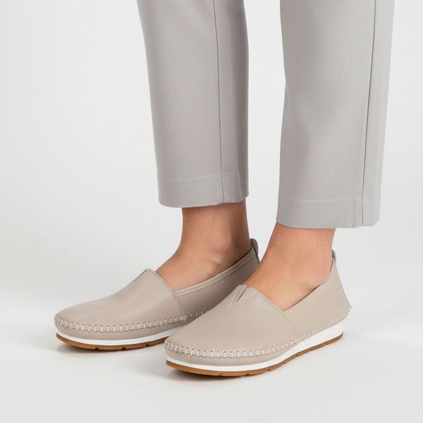 Półbuty damskie S.Barski, cholewka ze skóry naturalnej gładkiej wsuwany fason elastyczne wstawki po bokach widoczne przeszycia wokół noska lekka podeszwa niski profil zaokrąglony nosek, beżowe, LR61-7051