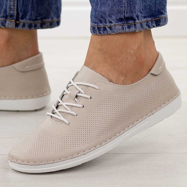 Beżowe ażurowe skórzane półbuty damskie S.Barski 7079