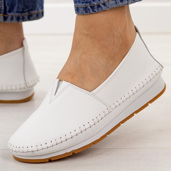 Białe skórzane półbuty damskie S.Barski 7051