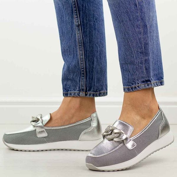 Srebrne skórzane półbuty damskieto stylowy wybór na wiosnę, lato i jesień, łączący elegancję z wygodą. Cholewka wykonana z wysokiej jakości skóry naturalnej oraz przewiewnej tkaniny zapewnia komfort i doskonałą cyrkulację powietrza. Model wyróżnia się efektownym, dużym łańcuchem w kolorze cholewki, który dodaje butom wyjątkowego charakteru i modnego akcentu. Wsuwana konstrukcja sprawia, że obuwie jest niezwykle […]