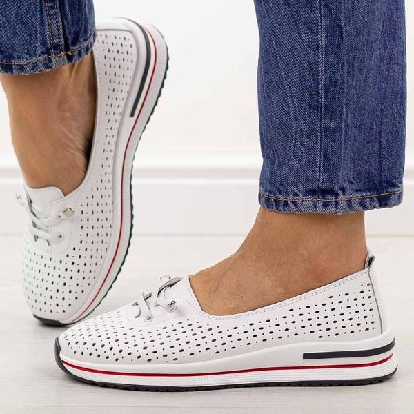 Białe ażurowe skórzane półbuty damskie S.Barski 7044