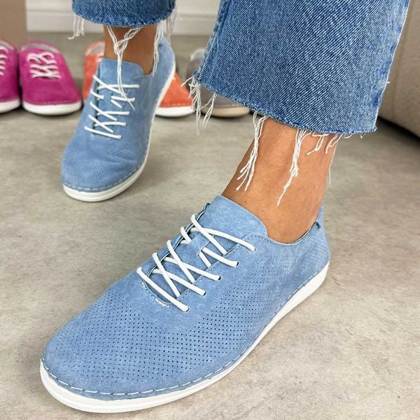 Stylowe i wygodne niebieskie skórzane półbuty damskieto doskonała propozycja na wiosnę, lato i jesień, stworzona z myślą o codziennym komforcie i modnym wyglądzie. Cholewka wykonana z wysokiej jakości skóry naturalnej zamszowej zachwyca eleganckim wykończeniem i miękkością, a ażurowana cholewka zapewnia odpowiednią przewiewność, idealną na cieplejsze dni. Model jest sznurowany, co pozwala na precyzyjne dopasowanie obuwia […]