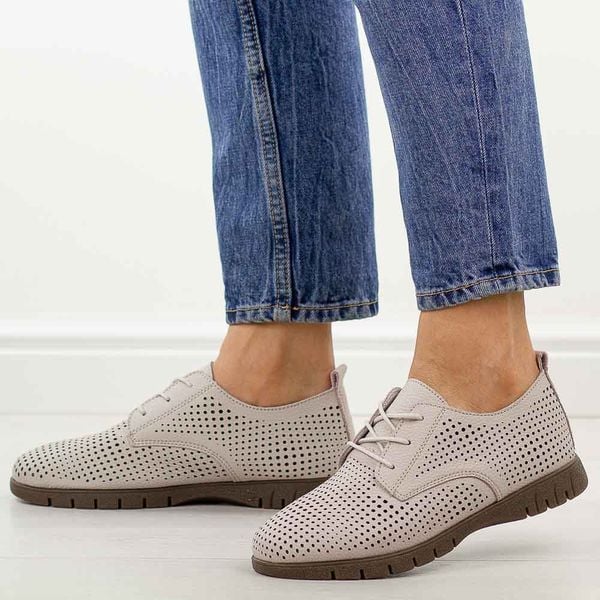 Szare ażurowane skórzane półbuty damskie Sergio Leone sp005