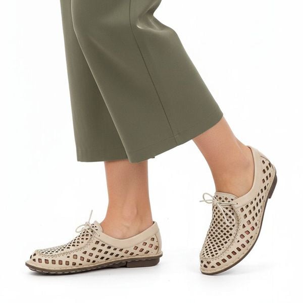 Półbuty damskie Artiker, cholewka skóra naturalna ażurowa perforacja sznurowanie z przodu miękka linia niski fason elastyczne wykończenie zaokrąglony nosek lekka forma, beżowe, 58C3500