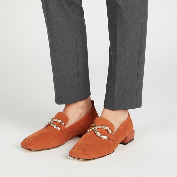 Półbuty damskie S.Barski, cholewka skóra naturalna zamszowa niski fason kwadratowy nosek ozdobny metalowy element na podbiciu stabilny niski obcas fason wsuwany, pomarańczowe, CR61-3115