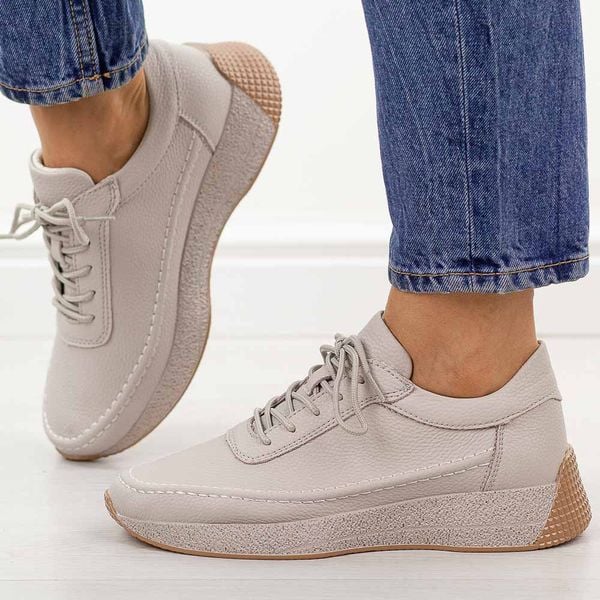 Szare gładkie skórzane półbuty damskie Sergio Leone sp013