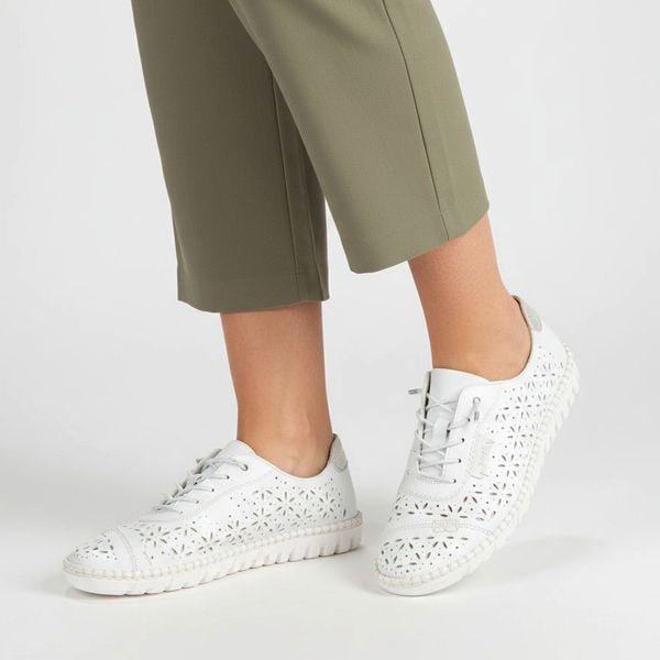 Półbuty RIEKER – M2354-80 White to doskonałe połączenie lekkości, wygody i subtelnej elegancji. Biała cholewka z efektowną, ażurową perforacją nadaje modelowi świeżości oraz zapewnia odpowiednią cyrkulację powietrza w cieplejsze dni. To półbuty damskie stworzone z myślą o codziennym komforcie, lecz również nowoczesnym stylu. Sznurowany fason umożliwia idealne dopasowanie do stopy, a miękka wkładka zwiększa wygodę […]