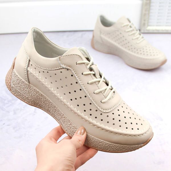 Skórzane półbuty damskie ażurowe beżowe Sergio Leone SP013