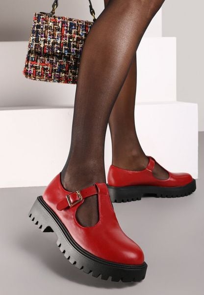 Bordowe Półbuty na Platformie w Stylu Mary Jane Ozdobione Metaliczną Sprzączką Zinida