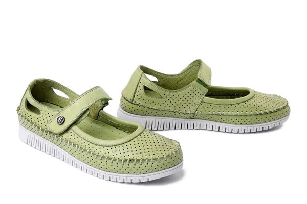 Półbuty damskie. Naturalna skóra. Perforowana cholewka. Skórzana, wymienna wkładka. Zapięcie na rzep. Elastyczna podeszwa TR.