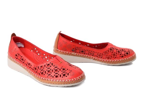 Półbuty damskie. Naturalna skóra. Ażurowa cholewka. Skórzana, wyjmowana, częściowo perforowana wkładka. Gumy ściągające. Elastyczna, trwała podeszwa TR.