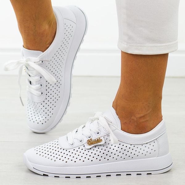 Białe ażurowe półbuty damskie Potocki 16346