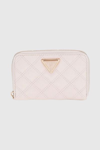 Biały portfel damski marki Guess, wykonany ze skóry ekologicznej. Zamykany na zamek, posiada wewnętrzną kieszeń na bilon, dwie przegrody, cztery miejsca na karty i dwie kieszenie wsuwane.