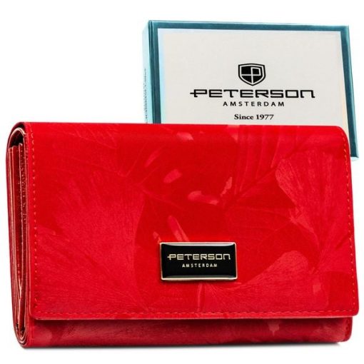 Elegancki, czerwony portfel damski ze skóry naturalnej i ekologicznej Peterson PTN PS15-09-MLF