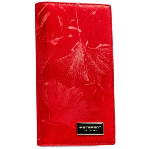 Duży, czerwony portfel damski ze skóry naturalnej i ekologicznej Peterson PTN PS401-MLF