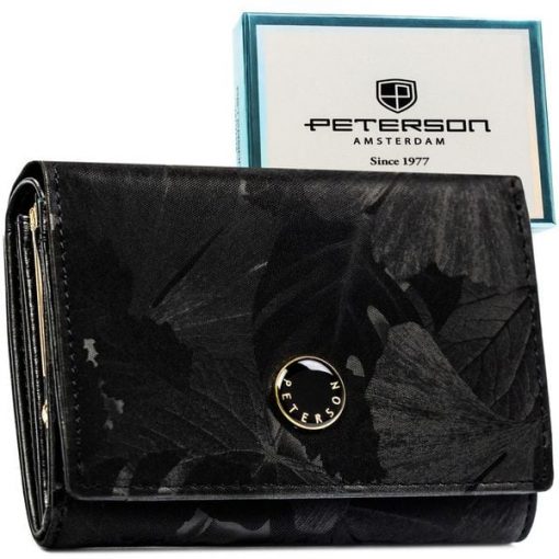 Poziomy portfel damski ze skóry naturalnej i ekologicznej w czarnym kolorze Peterson PTN PS445-MLF