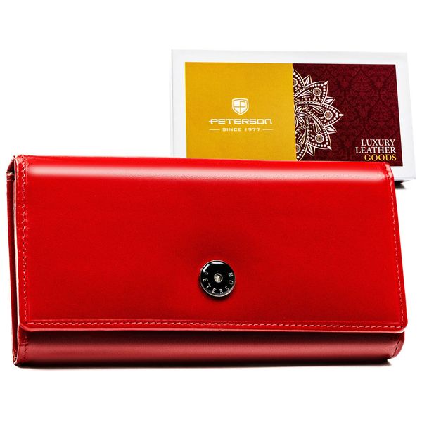Czerwony, skórzany portfel damski z systemem RFID, zamykany zatrzaskiem - Peterson