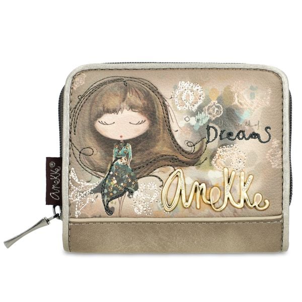 Portfel damski Anekke, mały kompaktowy kolekcjonerski z miejscem na zdjęcia na karty na bilon, brązowy, 41709-903