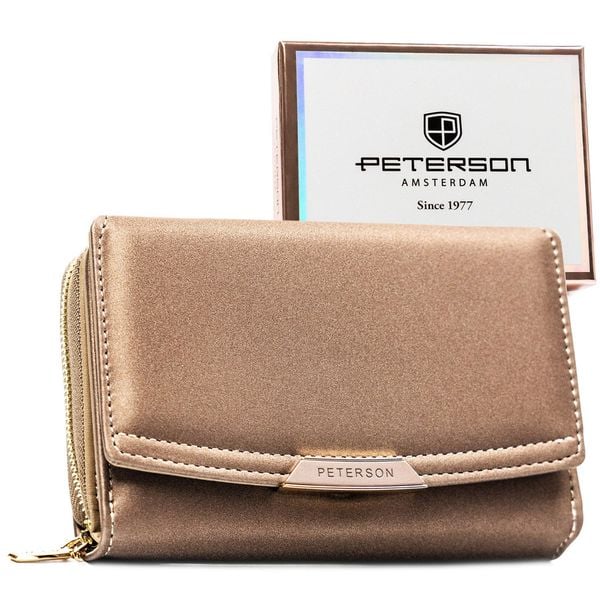 Beżowy portfel damski ze skóry ekologicznej zamykany na zatrzask i suwak PTN 005-NF8 Peterson