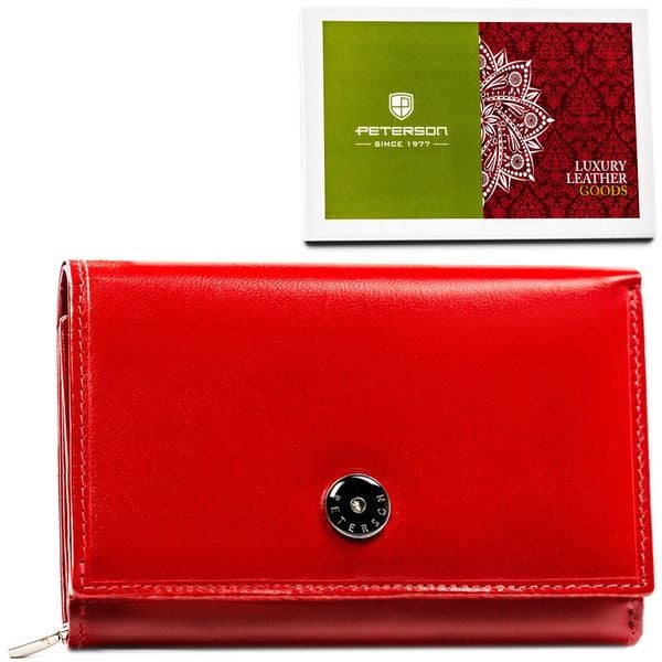 Czerwony, skórzany portfel damski z systemem RFID, zamykany zatrzaskiem - Peterson