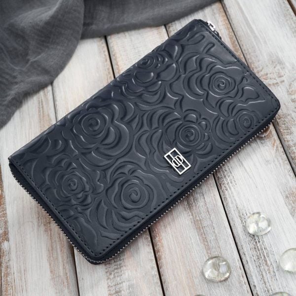 Duży portfel damski skórzany z tłoczeniem w kwiaty granatowy Paolo Peruzzi AL-14-NV