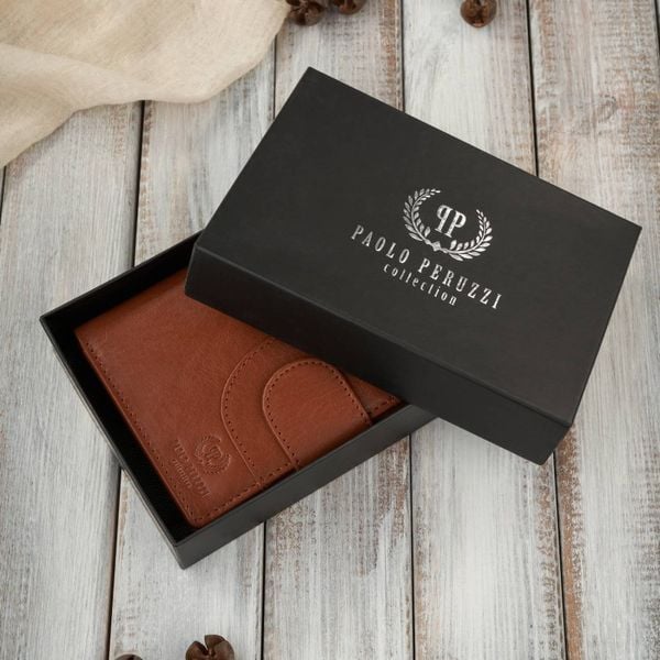 Portfel damski skórzany klasyczny koniakowy ze skóry naturalnej licowej Paolo Peruzzi AL-05-CG