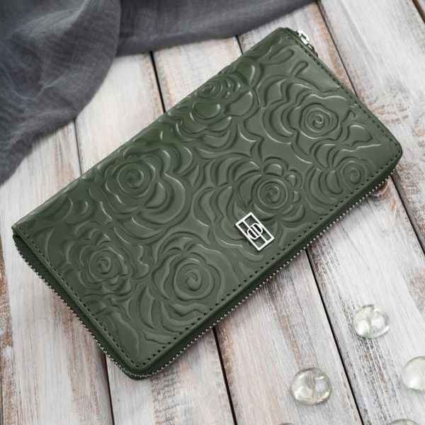 Ciemnozielony portfel damski skórzany z tłoczeniem kwiatowym RFID Paolo Peruzzi AL-13-GB