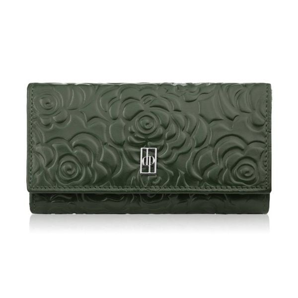 Ciemnozielony portfel damski skórzany z tłoczeniem kwiatowym RFID Paolo Peruzzi AL-13-GB