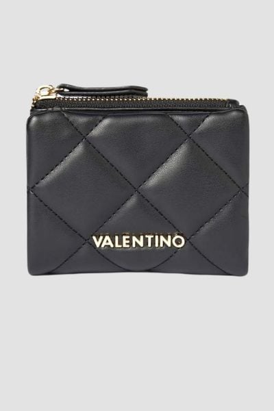 VALENTINO Czarny pikowany mały portfel Ocarina