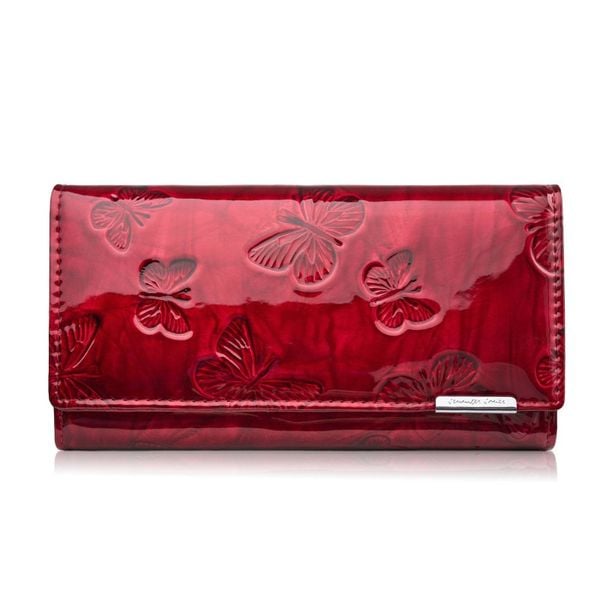 Portfel damski skórzany duży czerwony lakierowany ze wzorem w motyle SP-19-RD