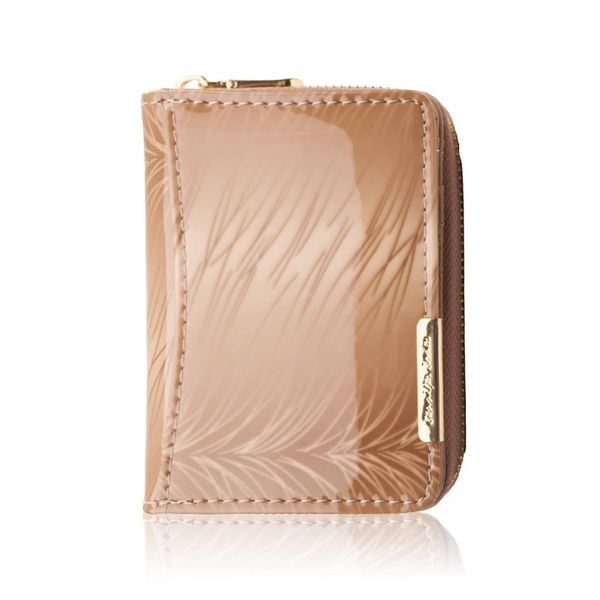 Portfel damski skórzany mini beżowy skóra naturalna lakierowana SP-18-RZBG