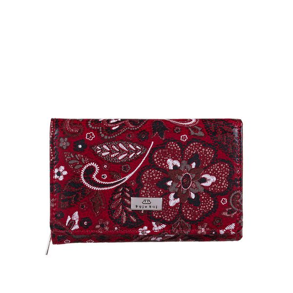 Czerwony portfel damski BajuBaj wykonany z naturalnej skóry licowej. Około 10 przegródek na karty, kieszeń na monety, okienko na zdjęcie oraz przegroda na banknoty. Polska produkcja i staranne wykonanie.