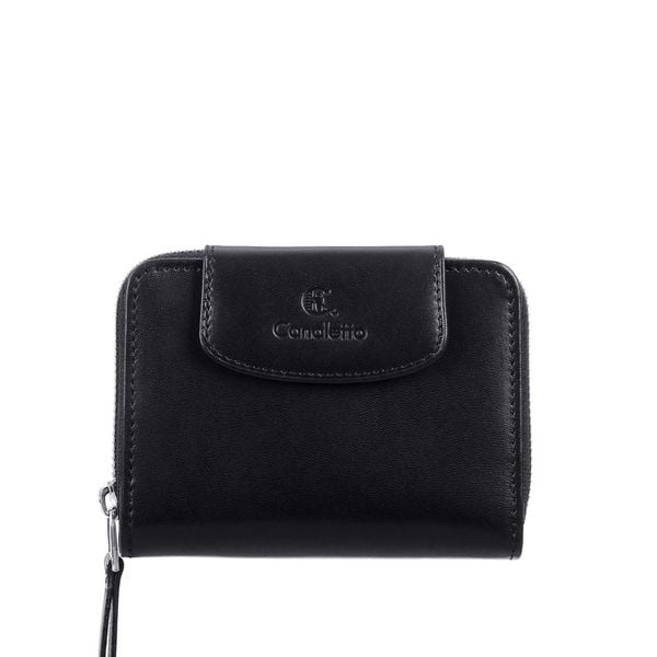 Damski portfel Canaletto z czarnej naturalnej skóry – elegancki design, 8 miejsc na karty, kieszeń na bilon i banknoty. Praktyczny, trwały i stylowy dodatek, który podkreśli Twój wyjątkowy charakter każdego dnia!