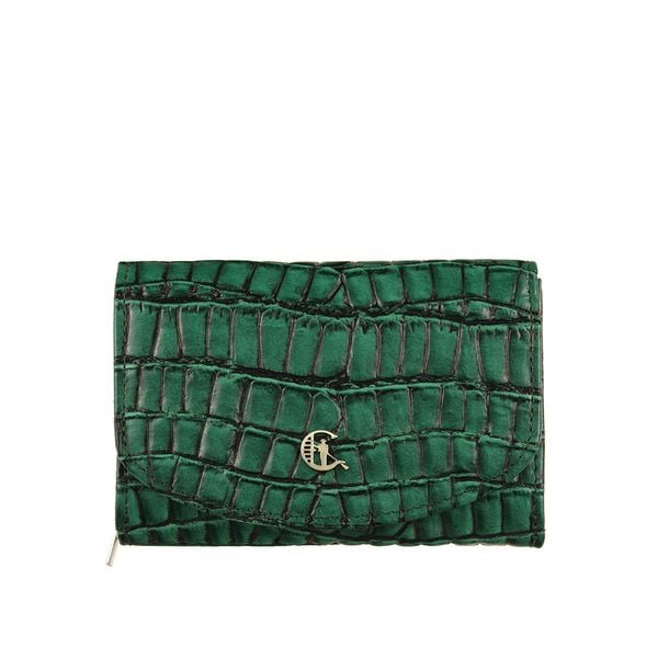Portfel damski skórzany mały ciemnozielony croco z ochroną RFID Paolo Peruzzi AL-03-GB
