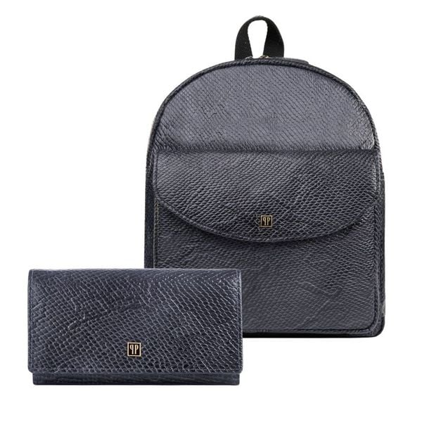 Portfel damski skórzany T-09-BL plecaczek damski miejski czarny T-18-PBL zestaw prezentowy Paolo Peruzzi ZUP-108-BL