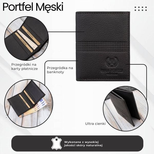 Portfel męski mały cienki z przegrodami skórzany praktyczny i stylowy RFID Paolo Peruzzi T-149-BR