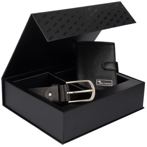 Zestaw prezentowy męski skórzany pasek portfel pudełko premium Beltimore Z28