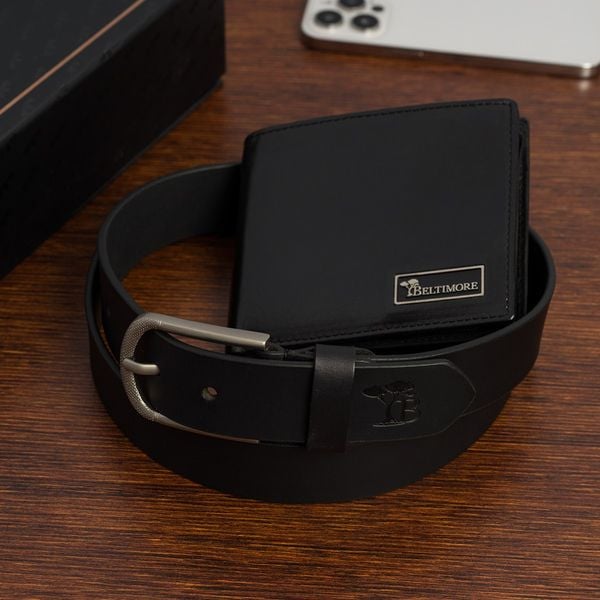Zestaw prezentowy męski skórzany pasek portfel pudełko premium czarny Beltimore Z25