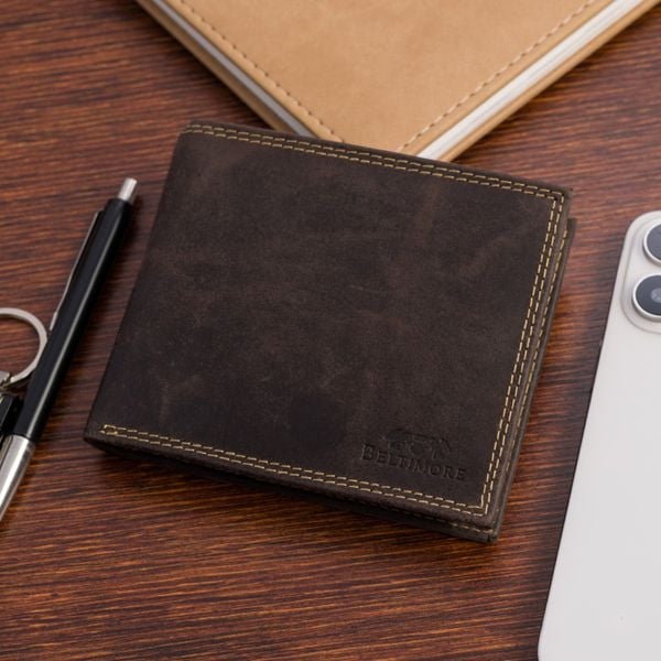 Portfel skórzany męski vintage poziomy klasyczny brązowy RFiD Beltimore S51